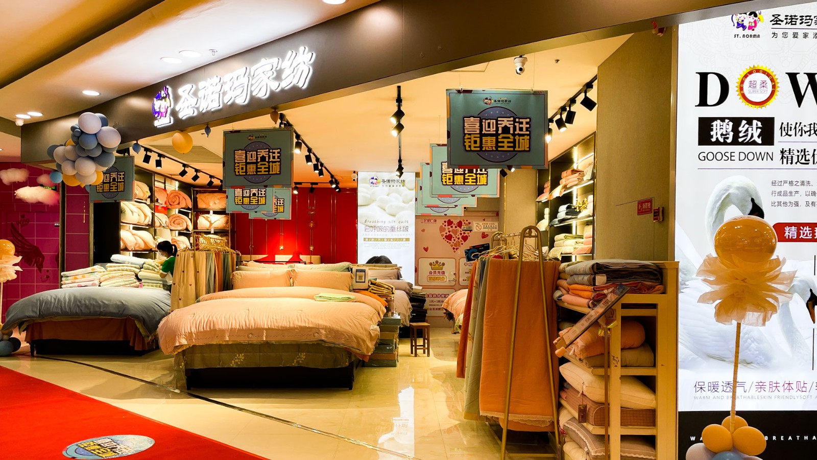 家紡區(qū)移至2樓后,面積、品牌形象全面升級,并加強對中高端產(chǎn)品的布局和推廣,選用中高檔家紡品牌,夢潔家紡、圣諾瑪家紡、百世銘家、睡夢寶家紡,所入駐家紡品牌符合行業(yè)標準,健康放心。此次品牌升級以適應和滿足不同消費者需求,以全新姿態(tài)亮相,吸引了眾多消費者。