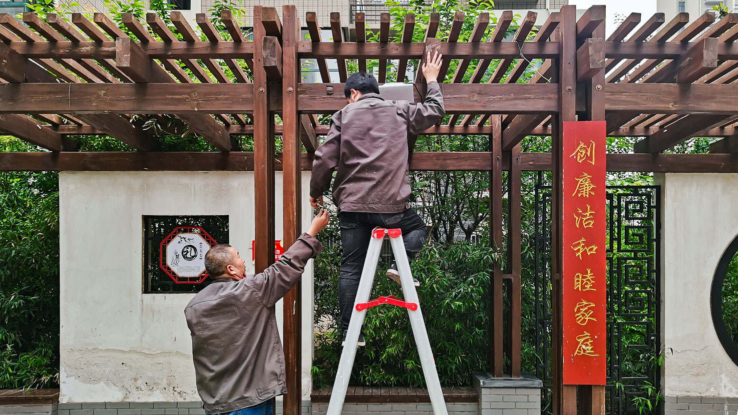 疫情嚴(yán)防控,服務(wù)不下線。在疫情期間,為了方便業(yè)主夜間在園區(qū)內(nèi)活動鍛煉身體,維修中心在物業(yè)公司安排下對水木清華二期小廣場加裝射燈。5月11日上午,待射燈等物資到位后,維修中心的員工便投入到安裝工作中,經(jīng)過布線、穿管、裝燈、調(diào)試等一系列程序,終于在下午4點,完成了水木清華二期小廣場的安裝射燈工作任務(wù)。