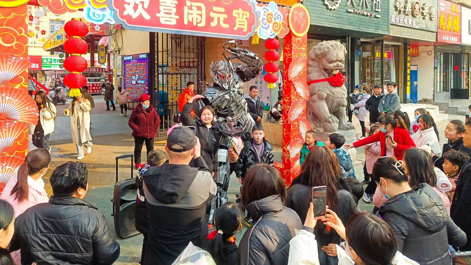 “福袋”寓意福氣滿滿、福星高照、代代有福、福延后代之意。在元宵節(jié)當(dāng)天,由步行街工作人員特別演繹的別樣“財(cái)神”到各個(gè)店鋪隨機(jī)向顧客朋友“送福袋、沾財(cái)運(yùn)”。除此之外,“威震天”空降現(xiàn)場(chǎng)與圍觀群眾幽默互動(dòng)惹驚喜。場(chǎng)內(nèi)展會(huì)市集讓人感受民俗文化、場(chǎng)外噴火技藝引發(fā)大家圍觀贊嘆,這一系列的活動(dòng)將步行街的元宵節(jié)氛圍感拉滿,現(xiàn)場(chǎng)客流引爆。