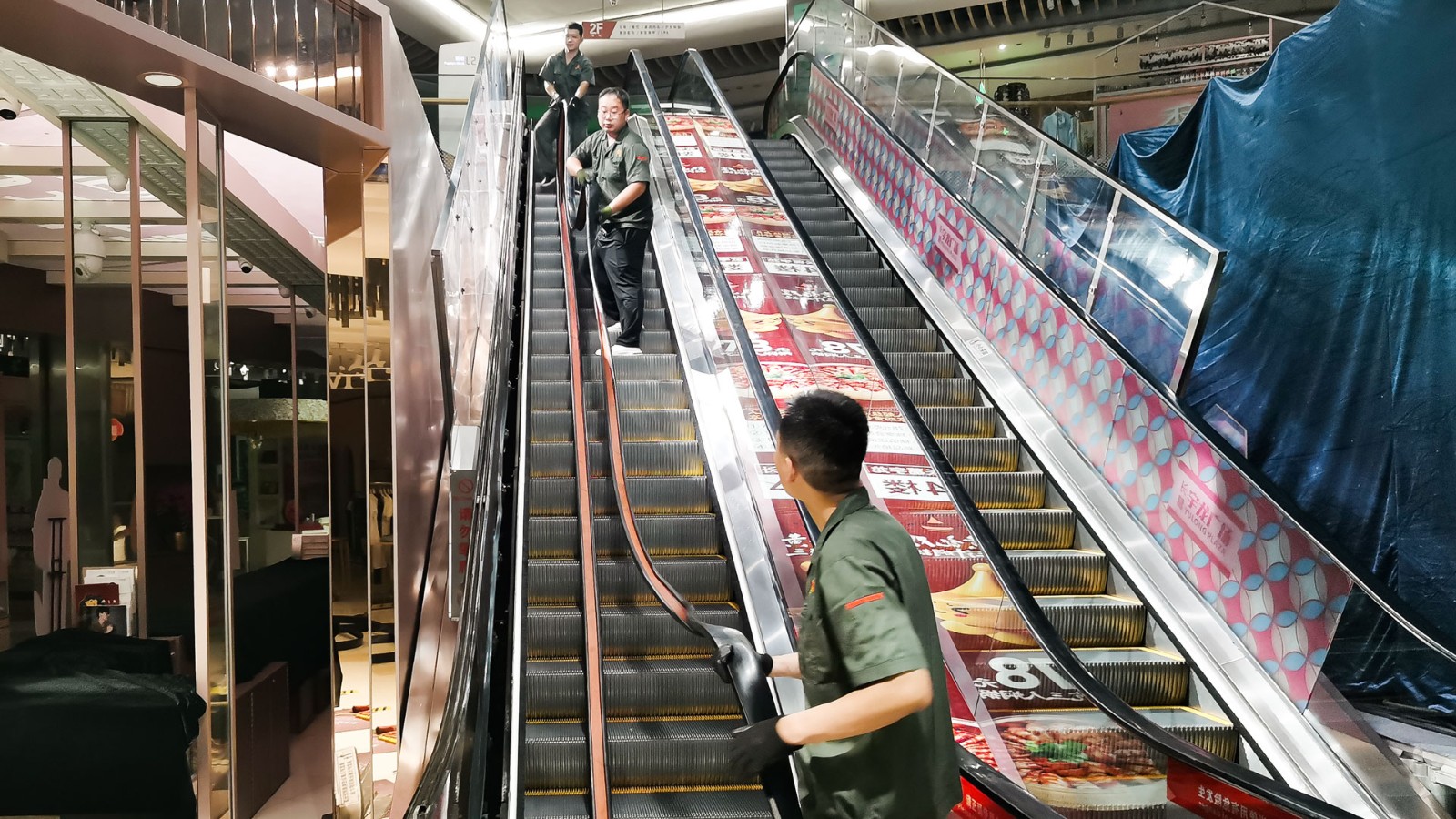 近期,維修中心電梯維保班組對宇龍廣場南廳1-2自動扶梯扶手帶進行了更換。