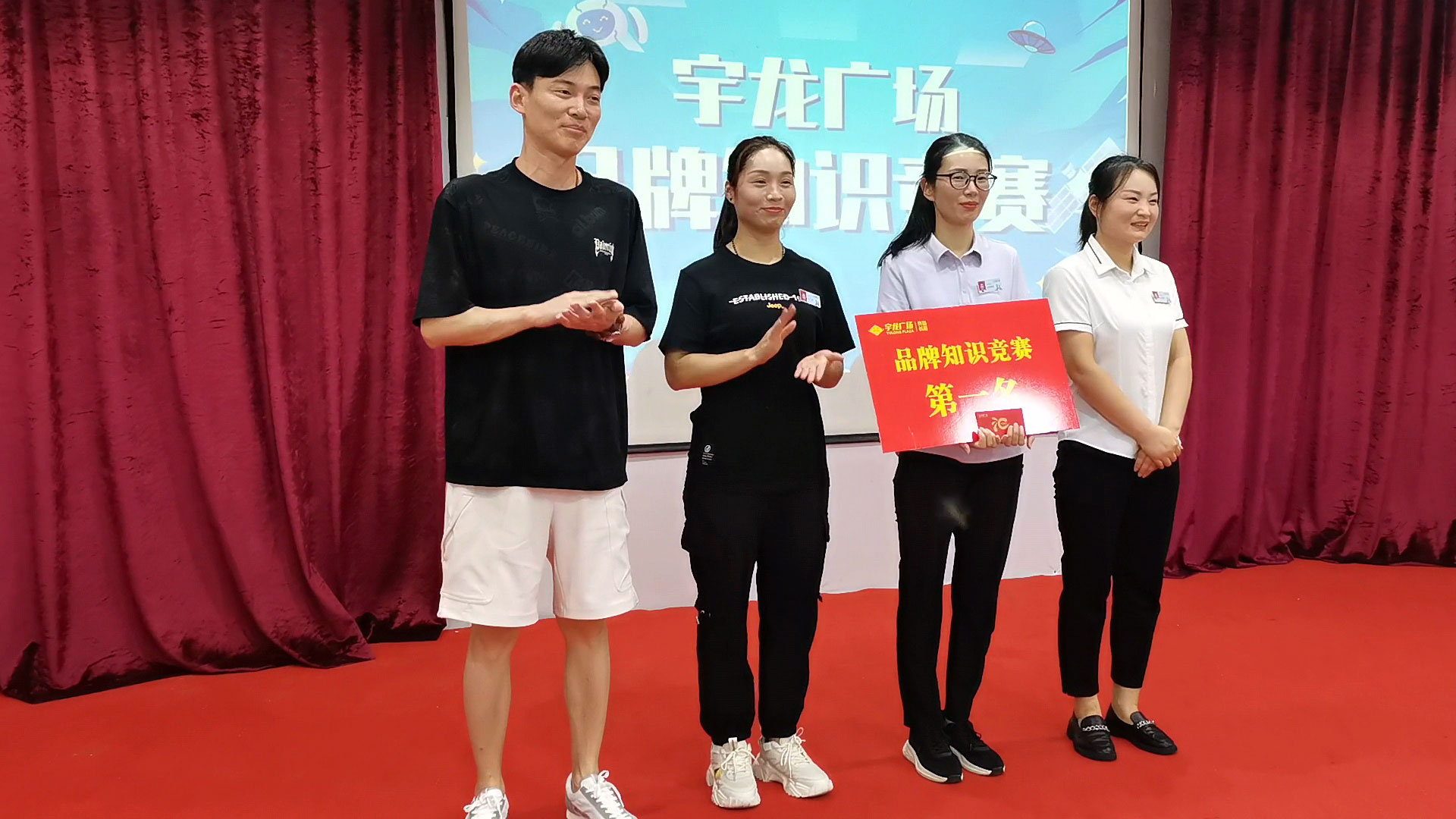 為強化導(dǎo)購員商場品牌知識基礎(chǔ),提高員工服務(wù)意識,培養(yǎng)員工團隊協(xié)作精神,宇龍百貨公司于8月25日上午,舉辦了品牌知識競賽,出席此次活動的有集團公司總經(jīng)理岳鵬濤、副總經(jīng)理祁雙印、百貨公司執(zhí)行董事胡黎明、總經(jīng)理王劍、集團管理部同事,本次比賽由各部門負責(zé)人、樓層經(jīng)理擔(dān)任評委,現(xiàn)場參加人員共有二百余人。在經(jīng)過兩個多小時的精彩角逐,三樓團隊獲得了團隊第一名,特邀請集團總經(jīng)理岳總為獲獎團隊頒發(fā)獎品,臺下觀眾為他們喝彩歡呼。