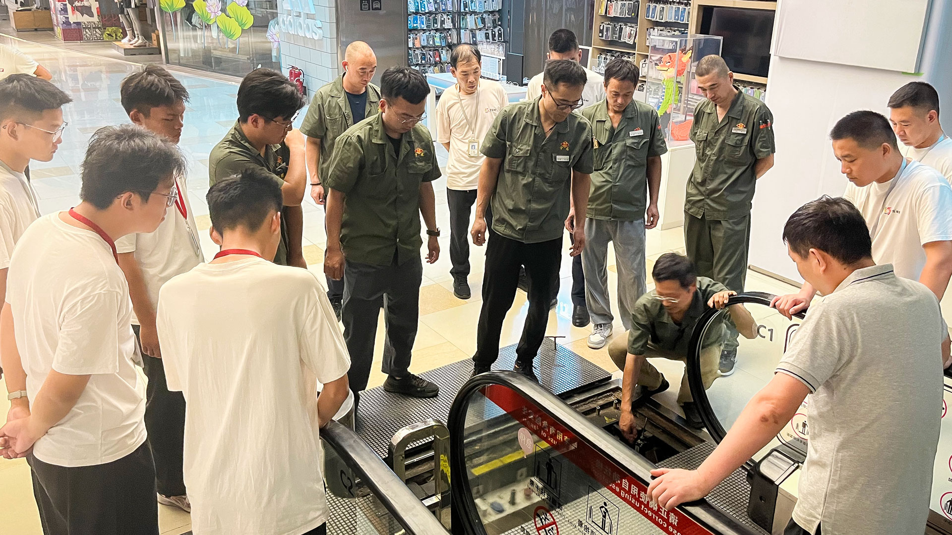 在電梯安全培訓環(huán)節(jié),水電維修中心電梯維保負責人聚焦廣場電梯日常運維中的高頻問題,包括梳齒板異常、防夾裝置觸發(fā)等故障代碼識別與常見故障解析。建議大家在報修時同步提供故障代碼,以提升維修效率?,F場更是向大家演示了直扶梯的盤車操作、平層定位等關鍵技能,重點強調了“斷電優(yōu)先”的原則,整體強化了參訓人員的故障判斷與應急處理能力。